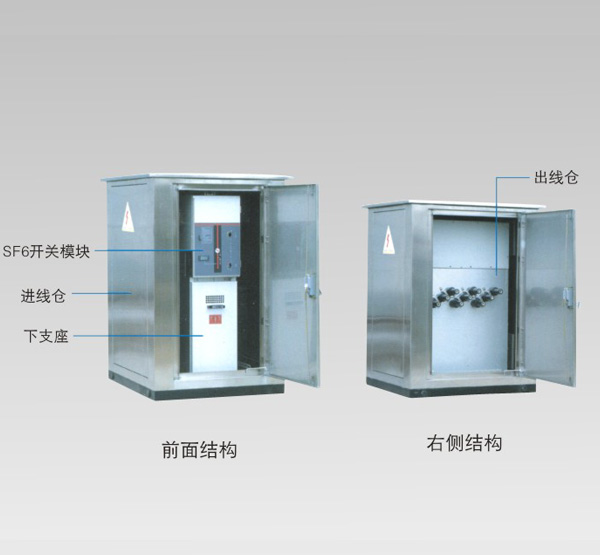 5、負荷開關的操作機構位于操作驅動室內,電纜隔室內有電纜樁線及電纜終端,電纜終端與負荷開關連接;